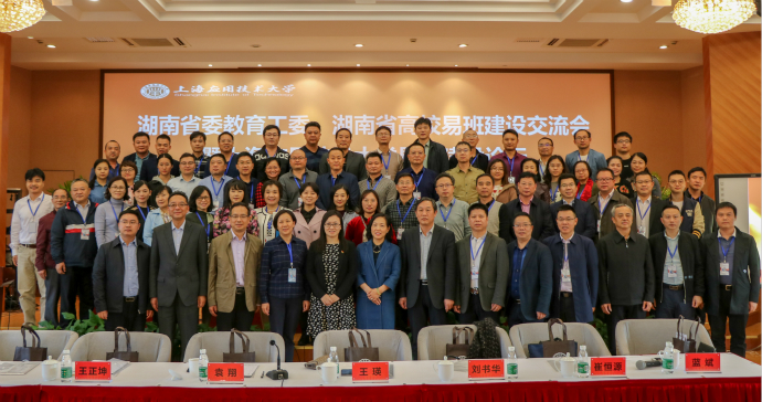 10月19日下午,由湖南省委教育工委宣传部部长刘书华带队,湖南省第二批易班共建高校校领导、学工部部长组成的考察团七十余人莅临我校交流易班建设工作。我校党委副书记、副校长王瑛出席会议。校党委学工部部长袁翔主持交流会。