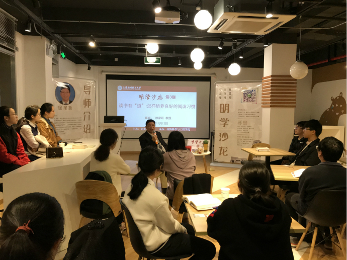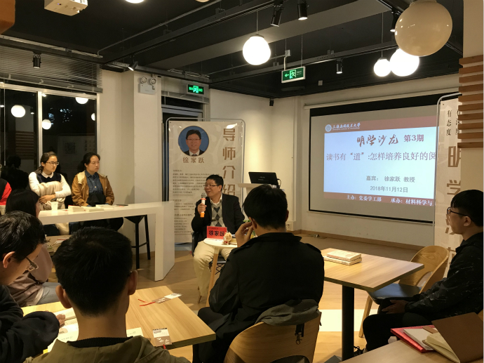 11月12日晚,我校学术委员会主任、材料科学与工程学院院长徐家跃教授做客“明学沙龙”第三期,并与20名学生代表一起围绕“读书有道:怎样培养良好的读书习惯”为主题展开讨论。活动在易班体验中心举行。