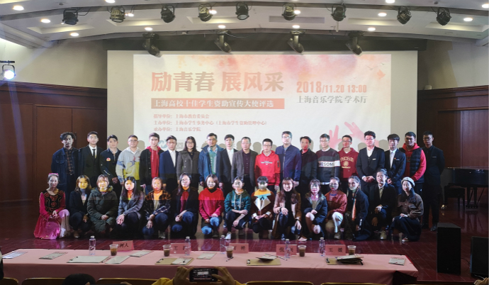 11月20日下午,由上海市学生事务中心主办的“励青春,展风采”上海高校十佳学生资助宣传大使现场评选活动,在上海音乐学院学术厅举行。本次活动旨在进一步加大国家学生资助政策和成效宣传的深度和广度,促进高校学生资助工作深入开展,包括985高校在内的上海30余所高校参与角逐。