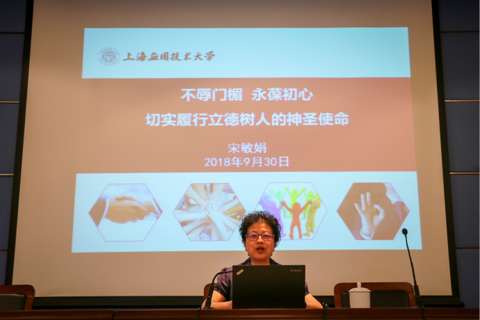 宋敏娟从中国和西方大学的发展历史阐释了大学的由来、大学的本质及职能,从辅导员岗位及高校思想政治工作的历史演进中深刻揭示了党和国家对大学生思想政治教育工作的高度重视,以及对辅导员队伍寄予的厚望。她同时也为全体辅导员上了一堂精彩的校情校史课。宋敏娟指出,上海应用技术大学有着光荣的历史和传统,值得全体辅导员自豪和珍惜,并担起光大门楣的责任。辅导员的工作成效关乎国家、民族的前途和命运,因此作为新时代的辅导员,要胸怀全局,放眼大势,要有新担当和新作为。宋敏娟指出,做好学生工作要知己知彼有底气,还要永葆初心敢担当,她要求辅导员在实际工作中要坚定正确的政治方向,竭诚关爱服务学生,要善于借势借力,不断改革创新,同时还要以工匠精神来锻造自己,不断提高工作水平和质量,追求完美和极致。
