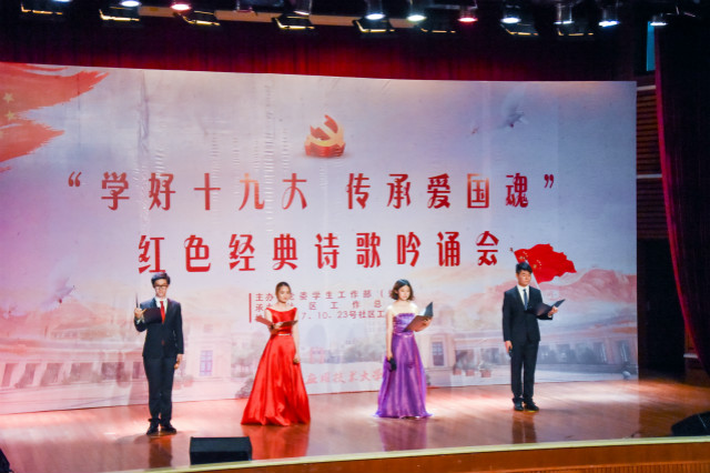 诗歌吟诵会以“爱国•信仰”为主题,是学校党委学工部学习宣传贯彻党的十九大精神安排的重要活动之一,旨在通过重温红色经典诗篇,回顾党的奋斗历程,讴歌共产党人永恒的精神追求和崇高信仰,坚定理想信念。各学院积极参加此项活动,选送了诸多主题色彩鲜明、文学性强、表现形式丰富的节目,经过筛选整合,形成了11首参演节目。