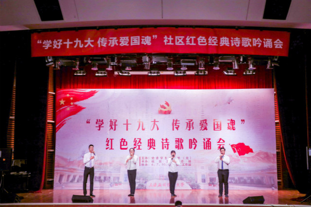5月16日,由学校党委学工部主办、社区工作总站承办的“学好十九大 传承爱国魂”暨“纪念马克思诞辰200周年”红色经典诗歌朗诵会隆重举行。校党委常委、宣传部部长杨明,党委学工部部长袁翔、马克思主义学院中国近现代教研室主任马光霞、团委副书记王晓琳以及部分学院学工书记、社区指导老师和学生代表等近300人共同聆听了红色经典诗歌,共抒革命情怀。