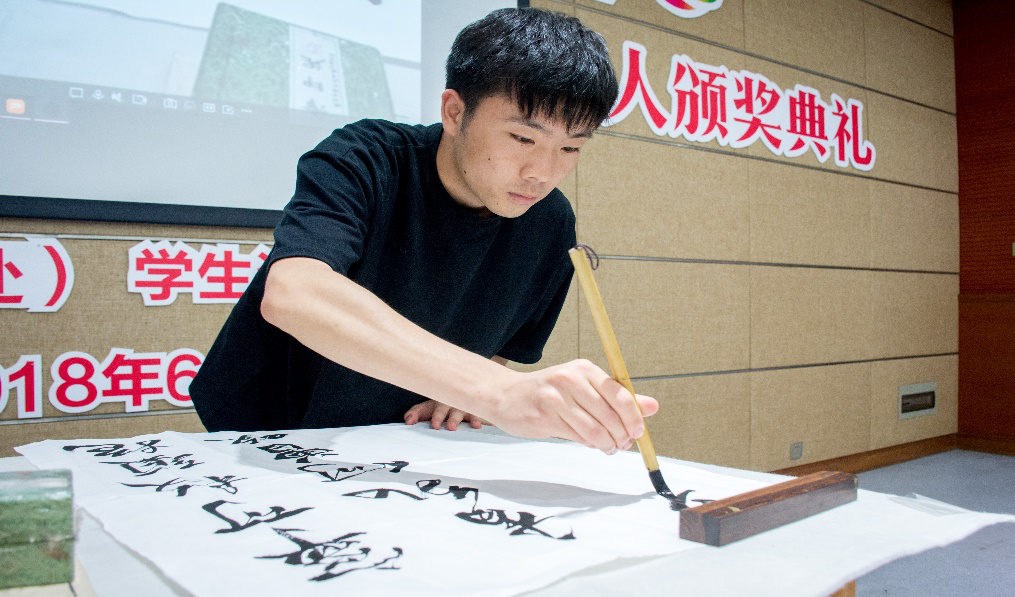颁奖典礼表彰了2016-2017学年国家励志奖学金获奖学生565人;校第十届“帮困征文”比赛获奖学生52人;2017年资助育人理论研究和教育实践项目获奖学生9人;2018年“勤助之星”获奖学生10人、“优秀勤助团队”5个;2018年度诚信月主题作品征集活动获奖学生48人。颁奖典礼上,“诚信月”书法作品一等奖获得者石涛同学挥毫泼墨,将现场气氛推向高潮。