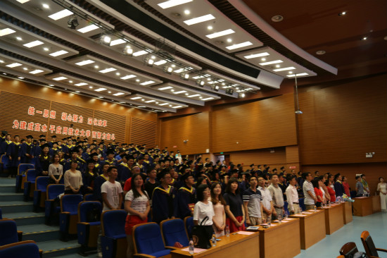 6月30日下午,我校2017届研究生毕业典礼在大学生活动中心多功能厅隆重举行。校党委书记刘宇陆、校长陆靖、校党委副书记、副校长张艳萍、副校长陈东辉、副校长张锁怀、校首届学位评定委员会主任、材料科学与工程学院院长徐家跃、化学与环境工程学院院长胡晓钧、机械工程学院院长张慧敏、电气与电子工程学院院长钱平、经济与管理学院院长熊焰出席了典礼。另外导师代表、党委学工部、研究生部领导、相关学院学生工作负责人、研究生毕业班辅导员、部分家长以及全体毕业研究生等共200余人参加了典礼,毕业典礼由校党委副书记、副校长张艳萍主持。