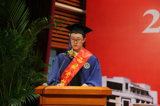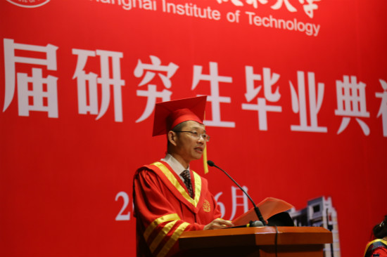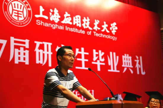 机械工程学院张而耕副教授作为导师代表发言,他强调了个人品质和学术钻研精神是研究生最重要的品质,他叮嘱毕业生们走上社会后要踏实勤奋的工作,要学会做人,任何时候都要自觉学习,丰富自己;要把在母校学到的技能运用到实践中去,为社会服务,实现自己的人生价值。