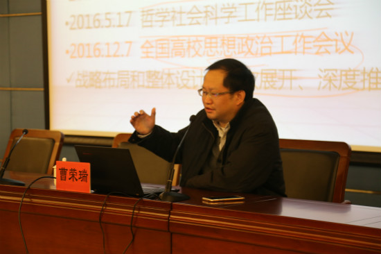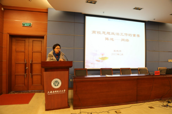 为进一步学习贯彻落实全国思想政治工作会议精神,1月16日至17日,我校“学习全国思想政治工作会议精神”辅导员专题学习班在奉贤校区行政楼117报告厅举行。校党委书记刘宇陆出席学习班并做动员讲话,上海市教卫工作党委宣传处处长曹荣瑞应邀来校作了全国思想政治工作会议精神解读的专题辅导报告,校党委副书记、副校长张艳萍就网络思政工作作了专题报告。党委学工部、校团委、各学院学生工作副书记及全体辅导员参加了本次专题学习班。
