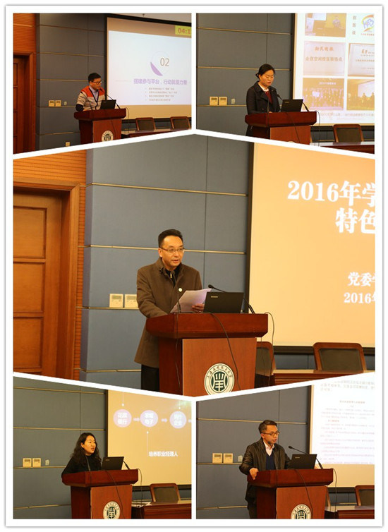 会上,16个学院的学生工作负责人从育人理念、建设路径、创新举措、成果实效等方面就本学院2016年学风建设特色项目进行了汇报,彰显了各学院真抓实干促进学风建设的特色和亮点。