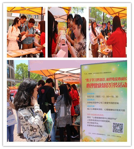 为更好地普及朋辈心理自助与互助知识,提升同学们的心理健康水平。近日,由心理健康教育中心主办的以 “携手学习心知识,相伴收获心成长”为主题的心理健康知识宣传活动在大学生活动中心与二食堂之间的空地上举行。