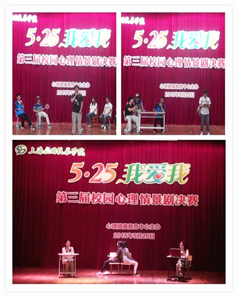 5月25日晚,由校心理健康教育中心主办的第三届校园心理情景剧决赛在大学生活动中心多功能厅举行。校副书记、副校长张艳萍,同济大学心理健康教育中心主任、学生处副处长赵娟、上海戏剧学院心理健康教育中心负责人徐辉,我校学生处副处长,心理健康教育中心负责人莅临比赛并担任评委。来自各学院的30名学生担任学生评委。