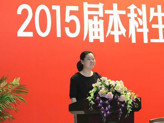 我校2005届香料学院轻化工程专业毕业生,1108111班班长,康莱纳(上海)食品有限公司总经理、技术开发总监李菁女士,作为校友代表进行发言,她以自己多年的职场经历,向即将踏上社会的学弟学妹们建议,一定要珍惜现有的工作机会,持续地学习,努力提升自己的职场能力,积蓄能量争取早日实现自己的梦想。