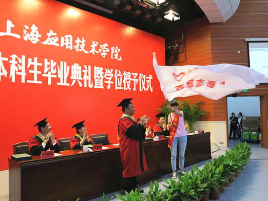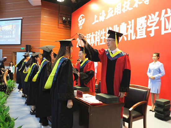 随后,副校长叶银忠宣布了授予学士学位的学生名单。在欢快的音乐声中,学士学位授予仪式隆重进行,校领导向毕业生们一一授予学士学位证书,并为他们拨穗。