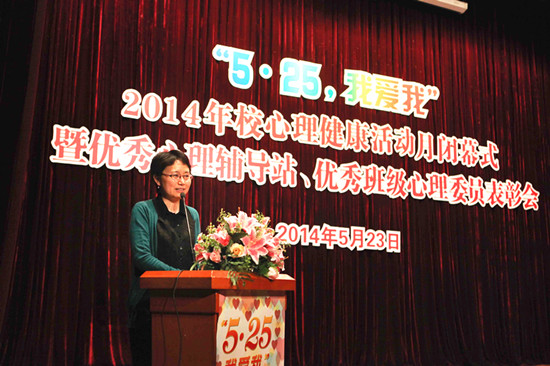 5月23日下午,“5·25,我爱我”2014年心理健康活动月闭幕式暨优秀心理辅导站、优秀班级心理委员表彰会在大学生活动中心多功能厅隆重举行。副校长张艳萍出席并讲话。学生处领导、各学院学工负责人、心理辅导站站长以及各学院班级心理委员近300名师生参加了闭幕式。