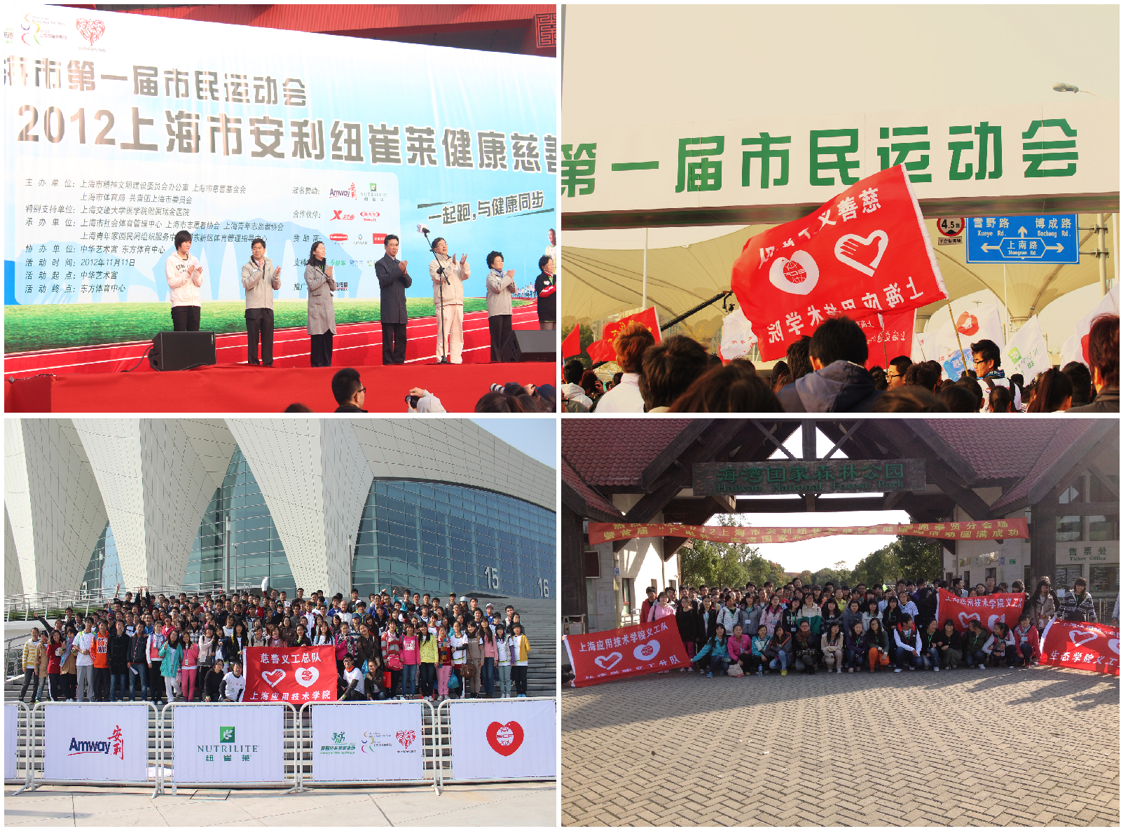 11月11日,我校300余名慈善义工同学分赴中华艺术宫(原世博中国馆)和奉贤区海湾国家森林公园,参加了上海市首届市民运动会慈善慢跑活动,在享受运动快乐的同时,为上海的慈善事业奉献了自己的力量。