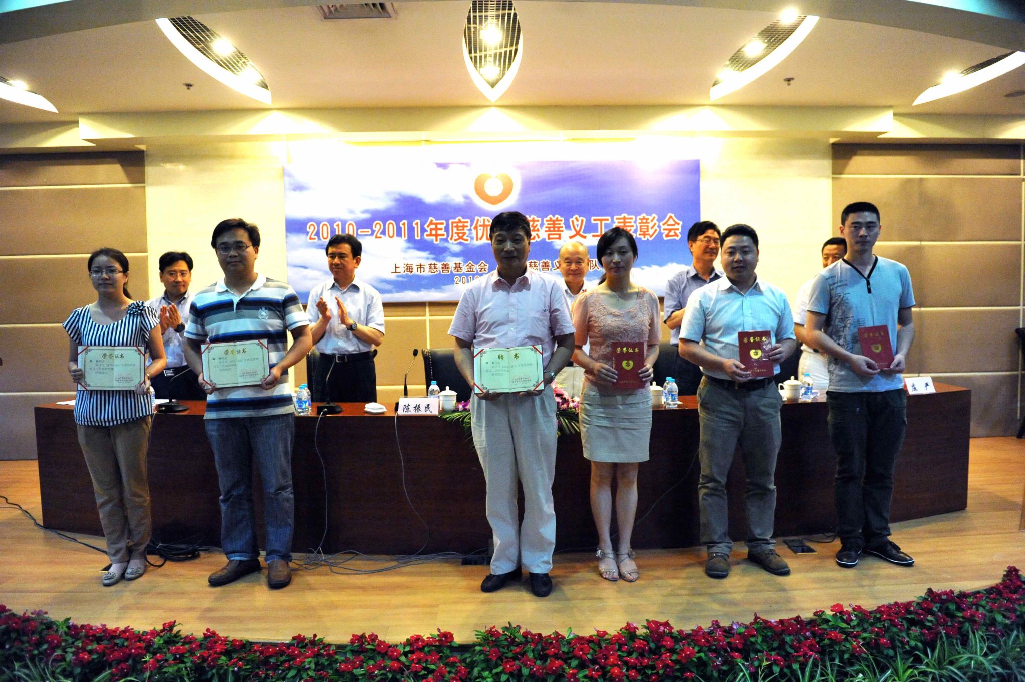6月21日下午,上海市慈善基金会2010-2011年度优秀慈善义工表彰会在上海大学举行。上海市精神文明建设委员会办公室巡视员、上海市志愿者协会常务副秘书长陈振民,上海市慈善基金会副理事长、慈善义工总队常务副队长郭开荣,优秀慈善义工集体代表、个人代表、优秀义工活动组织者代表共同出席本次表彰会。