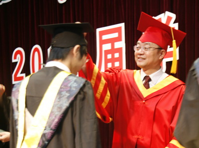 随后,在欢快的音乐声中进行了隆重的毕业生学位授予仪式,校领导向在此的毕业生一一授予了学士学位证书,并为他们拨穗。